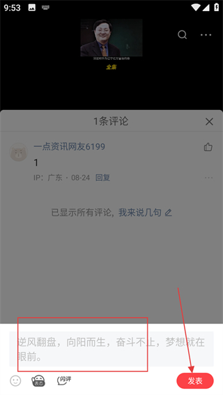 4、在輸入框頁面輸入完成后,點(diǎn)擊發(fā)表,發(fā)布評(píng)論。