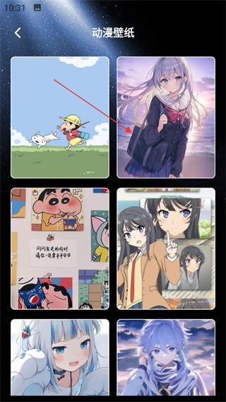 3、在動(dòng)漫壁紙頁(yè)面,選擇喜歡的壁紙,進(jìn)入壁紙?jiān)斍轫?yè)面。