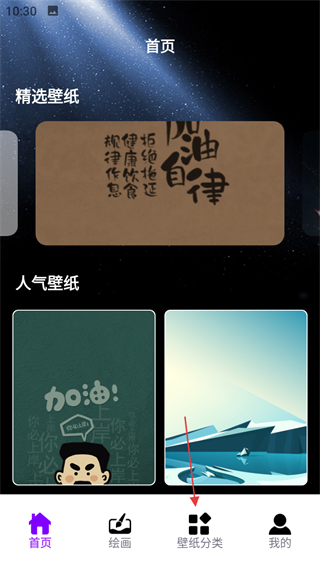 1、進(jìn)入軟件首頁(yè),點(diǎn)擊底部壁紙分類(lèi),進(jìn)入壁紙分類(lèi)頁(yè)面。
