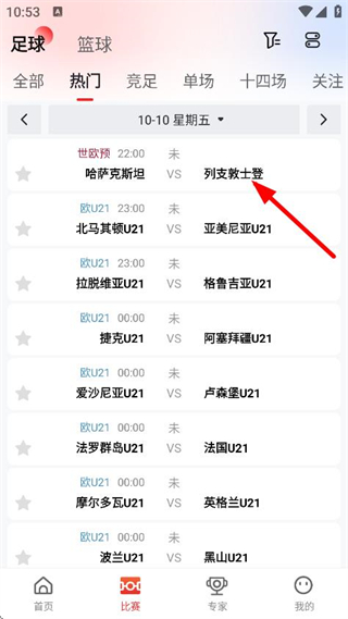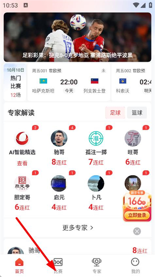 1、進入小炮體育首頁,點擊比賽,進入比賽列表頁面。