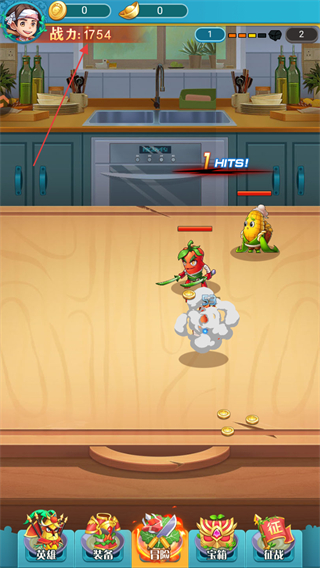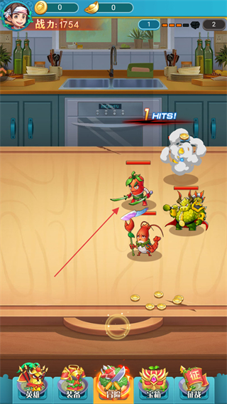 4、擊敗敵方精靈獲取金幣和道具,不斷提升英雄戰(zhàn)力,點(diǎn)擊下方“英雄”“裝備”等按鈕進(jìn)行強(qiáng)化。