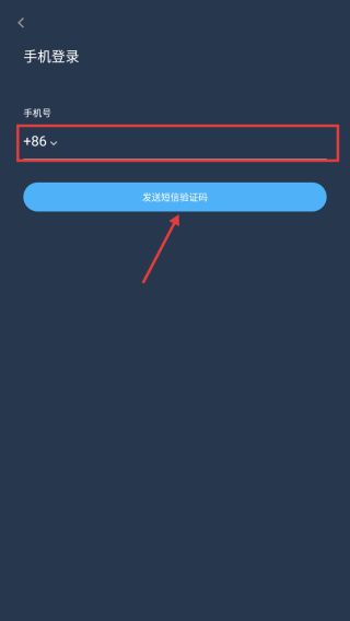 4、在手機(jī)號(hào)輸入頁(yè)面,輸入手機(jī)號(hào)后點(diǎn)擊發(fā)送短信驗(yàn)證碼按鈕,獲取驗(yàn)證碼以完成登錄操作。