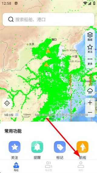 2、在軟件主界面,點擊下方常用功能中的航線,進入航線相關(guān)頁面。