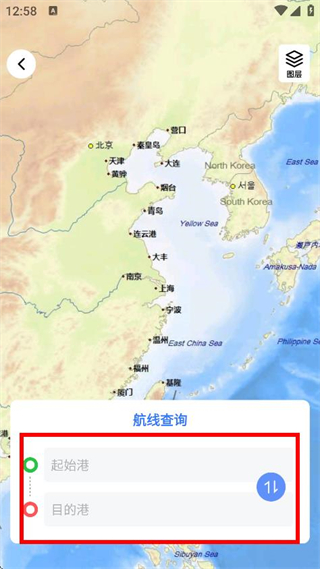 3、進入航線查詢頁面后,填寫起始港和目的港,進行航線查詢準備。