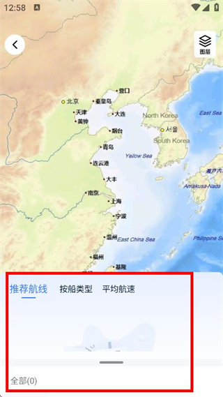 4、完成起始港和目的港填寫后,即可查看推薦航線分類的航線信息。