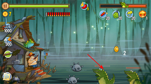 1、戰(zhàn)斗積累經(jīng)驗,攻擊對面行進的鱷魚等敵人,通過戰(zhàn)斗獲取經(jīng)驗,積累程度即可升級。