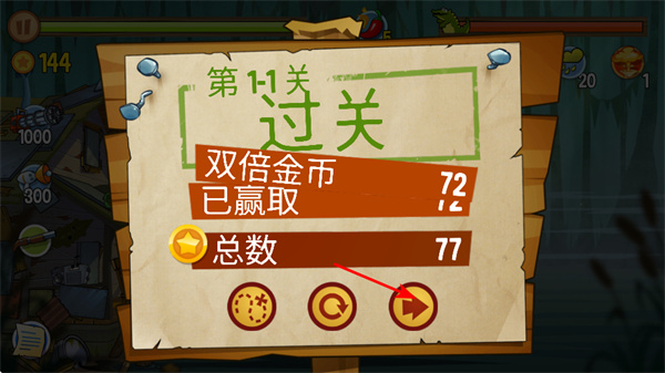 2、通關后點擊箭頭按鍵,來進行獲取獎勵,完成后,獲得金幣和經(jīng)驗的獎勵,助力游玩升級。