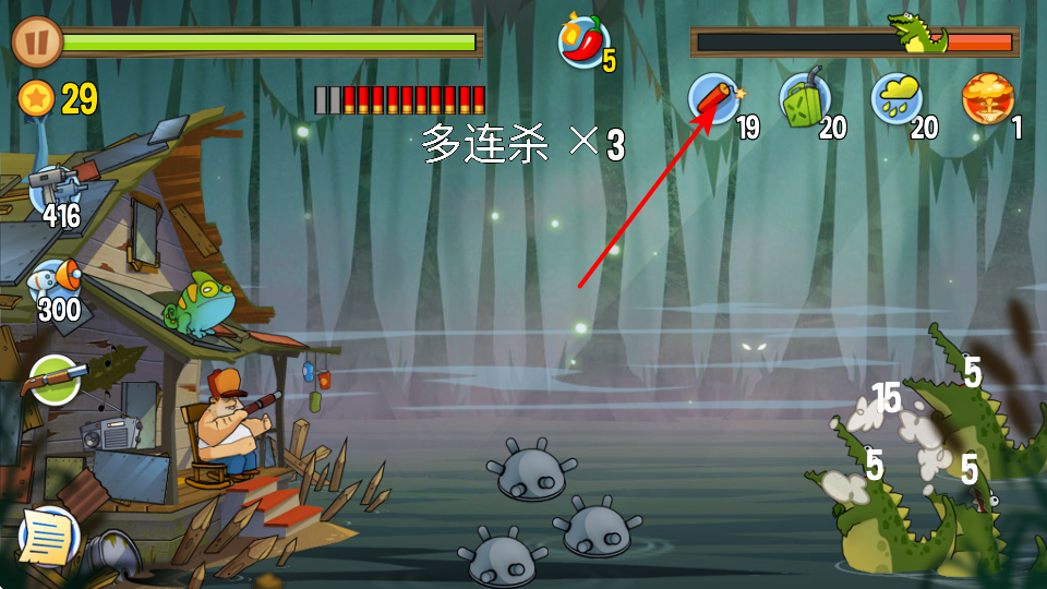 4、使用道具增效,合理使用炸彈等道具,實現(xiàn)多連殺,清理敵人,獲取更多經(jīng)驗,加速進程。