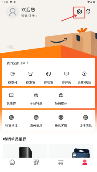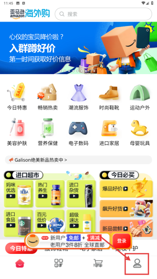 1、打開亞馬遜海外購應(yīng)用,點擊底部我的選項,進(jìn)入個人中心頁面。