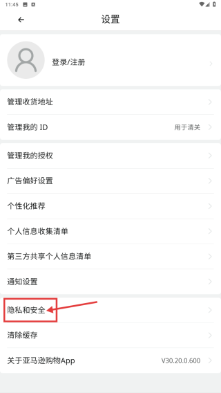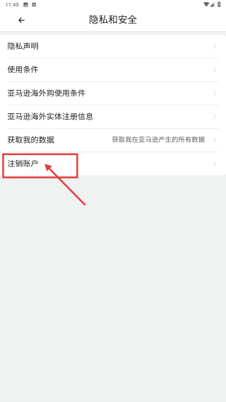 4、在隱私和安全頁面,點擊注銷賬戶選項,發(fā)起賬戶注銷操作。