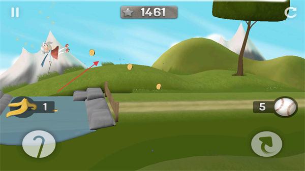 2、途中盡可能收集金幣,增加分?jǐn)?shù),同時(shí)留意左下角香蕉1和右下角棒球5等道具數(shù)量。