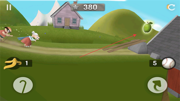 3、遇到敵人或危險(xiǎn)時(shí),合理使用香蕉、棒球等道具擺脫困境,比如用棒球擊打敵人。