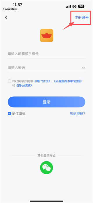 3、在登錄/注冊(cè)界面,點(diǎn)擊注冊(cè)賬號(hào)選項(xiàng),進(jìn)入賬號(hào)注冊(cè)頁面。