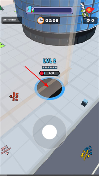 4、升級黑洞,通過持續(xù)吞噬目標,提升黑洞等級,以便吞噬物體,完成關卡目標。