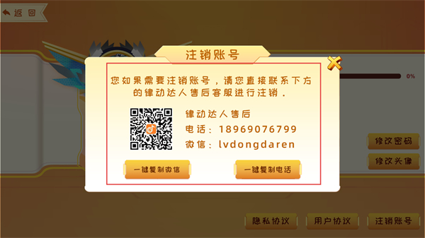 3、在注銷賬號(hào)提示框,可聯(lián)系律動(dòng)達(dá)人售后客服進(jìn)行賬號(hào)注銷。