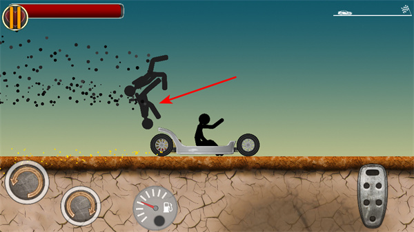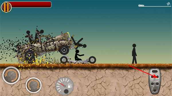 戰(zhàn)斗過程中需兼顧前進(jìn)與防御,既要躲避其他車輛撞擊防止停滯,又要利用武器反擊火柴人射擊,還能通過擊毀敵方的車輛拾取道具強(qiáng)化自身。