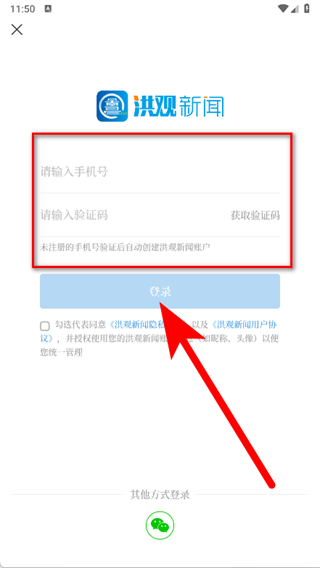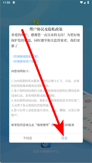 1、打開洪觀新聞,在彈窗中點(diǎn)擊同意。