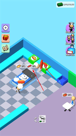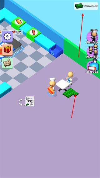 3、顧客會(huì)有食物需求顯示,廚師成功送餐給顧客后,能獲得相應(yīng)的收益,收益會(huì)在右上角顯示。
