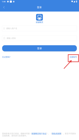 3、在登錄界面,點擊注冊賬號選項,進入注冊頁面。