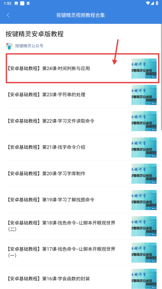 3、在教程列表中,找到安卓基礎(chǔ)教程第24課-時(shí)間判斷與應(yīng)用條目,點(diǎn)擊進(jìn)入教程詳情頁(yè)。