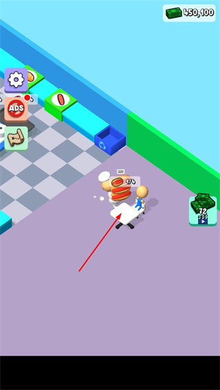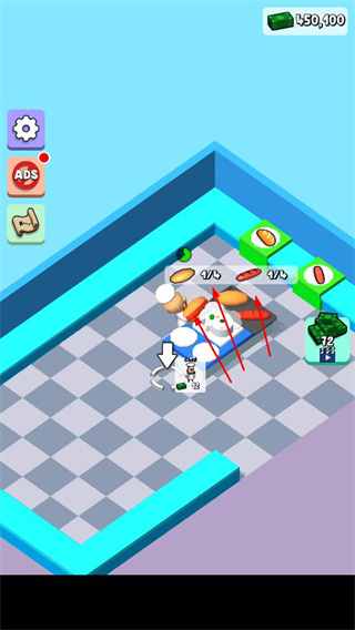3、顧客會有食物需求顯示,廚師成功送餐給顧客后,能獲得相應(yīng)的收益,收益會在右上角顯示。