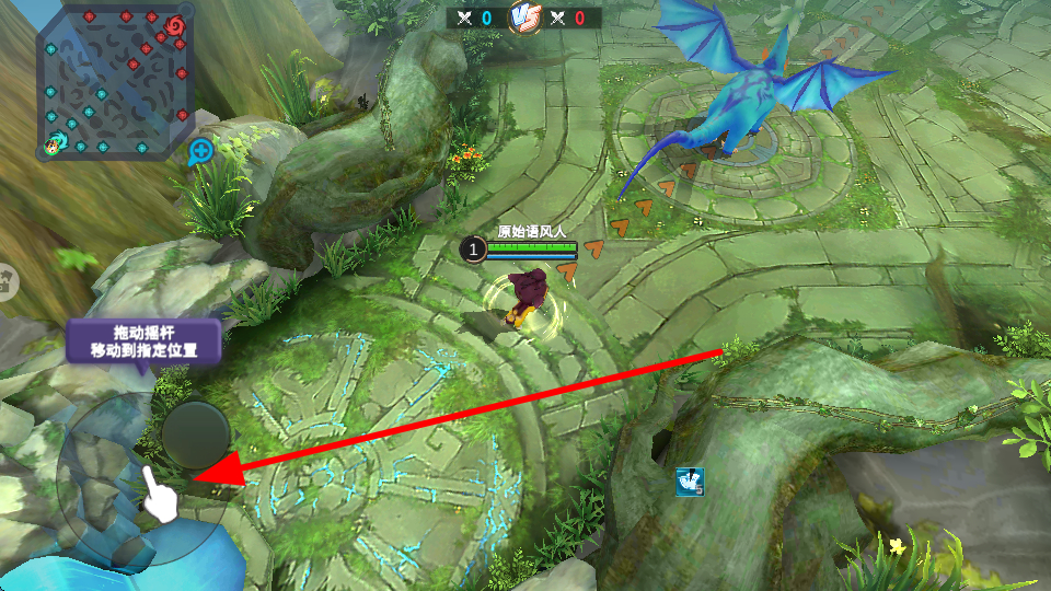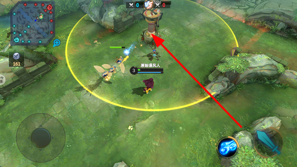 1、移動依靠左下角搖桿,能控制英雄在地圖中前進(jìn)、后退、向左或向右移動,以此調(diào)整戰(zhàn)斗位置。