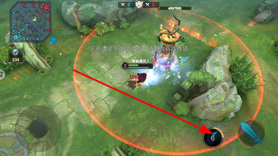 4、要配合兵線推進(jìn),在兵線吸引防御塔火力時(shí),操控英雄對防御塔進(jìn)行攻擊,削減防御塔血量將其摧毀。