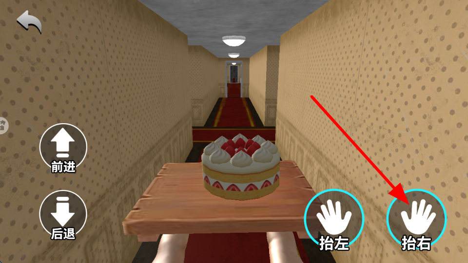 1、點(diǎn)擊左側(cè)前進(jìn)按鈕,角色會(huì)向前移動(dòng),點(diǎn)擊后退按鈕,角色會(huì)向后移動(dòng),以此調(diào)整在走廊中的位置。