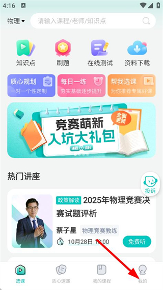 內(nèi)置物理、生物、化學(xué)和數(shù)學(xué)四個競賽核心學(xué)科,學(xué)科間支持自由切換,無需額外操作即可切換學(xué)習(xí)內(nèi)容,滿足學(xué)員多學(xué)科競賽學(xué)習(xí)需求。