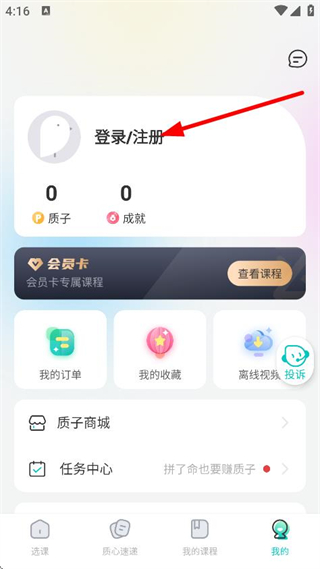 2、在我的頁面,點擊登錄注冊,進入登錄注冊界面。