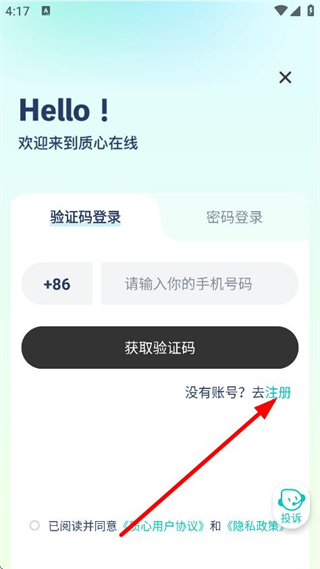 3、隨后我們可在登錄注冊界面,點擊去注冊,進入注冊流程。