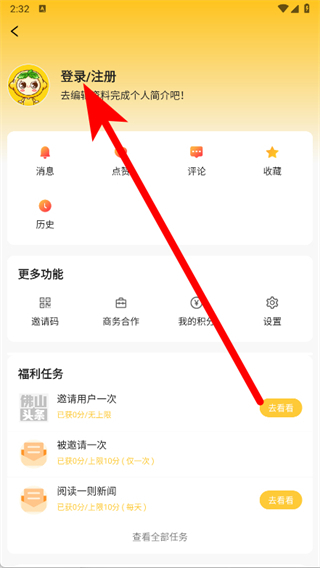 1、打開APP,點擊頁面右上角的人物圖標(biāo)。
