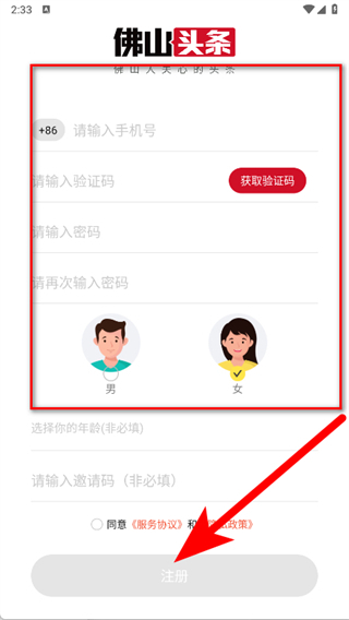 4、依次填寫手機號、驗證碼、密碼等信息,勾選后點擊注冊,完成注冊。