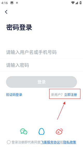 3、在登錄/注冊頁面,點擊立即注冊,進入注冊頁面。