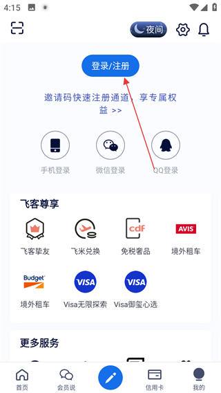 2、在個人頁面,點擊登錄注冊,進入登錄注冊頁面。