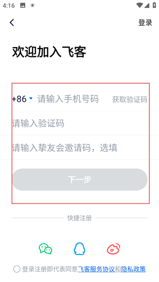 4、在注冊頁面,輸入信息后,點擊下一步,完成注冊操作。