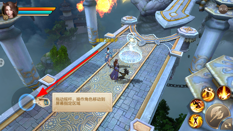 1、通過拖動(dòng)左側(cè)搖桿,能控制角色移動(dòng)到屏幕指定區(qū)域,以此調(diào)整戰(zhàn)斗位置,接近敵人或躲避攻擊。