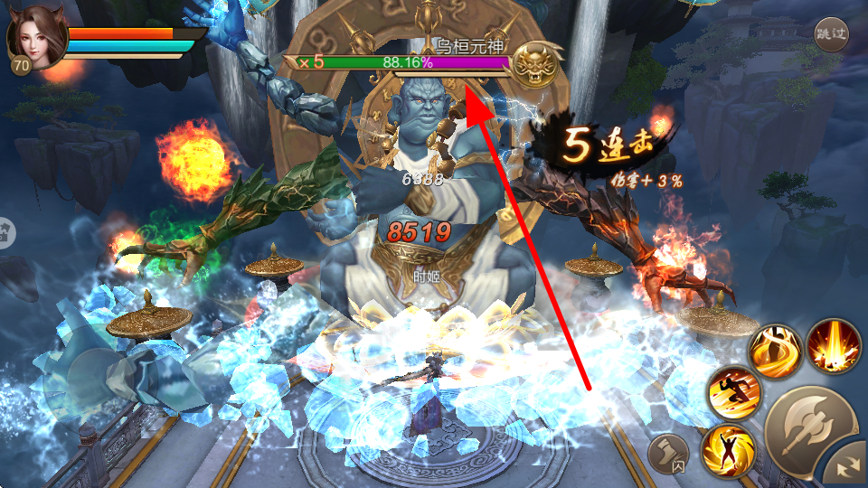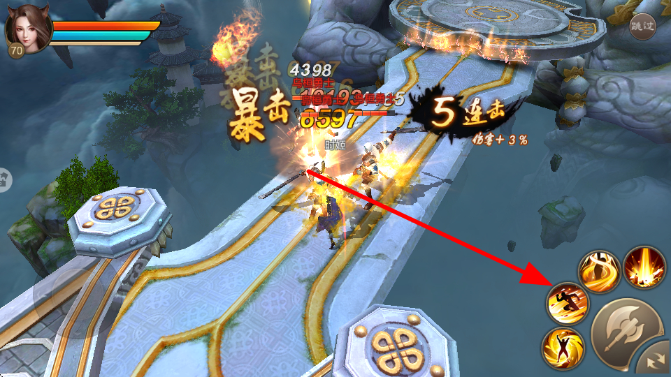 2、點(diǎn)擊右側(cè)對(duì)應(yīng)技能圖標(biāo),對(duì)敵人釋放技能,不同技能有不同效果,合理使用能高效打擊敵人。