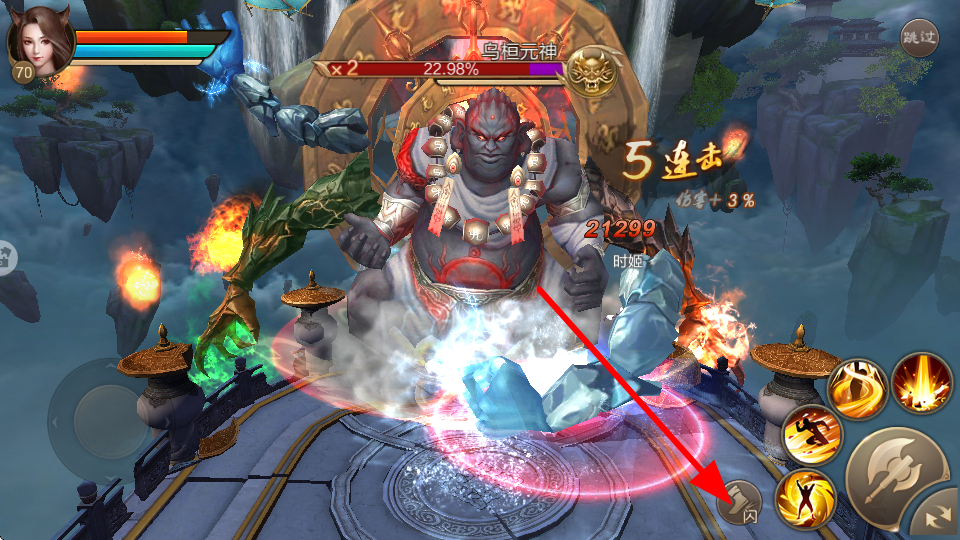 4、當(dāng)敵人發(fā)起攻擊時(shí),點(diǎn)擊閃避按鈕,快速躲避敵人傷害,保持角色良好狀態(tài),提升戰(zhàn)斗續(xù)航能力。
