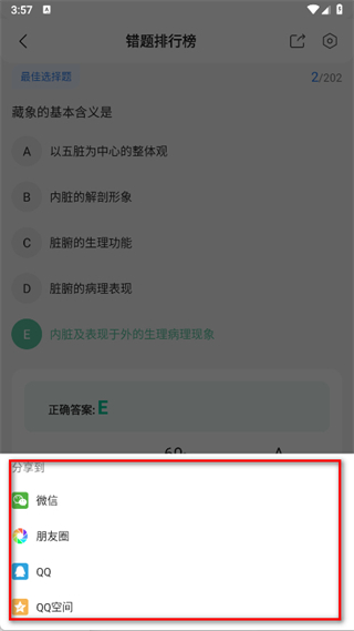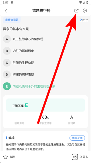 3、在錯題排行榜頁面,點擊右上角的分享圖標。