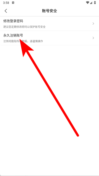 3、進入賬號安全頁面,點擊永久注銷賬號。