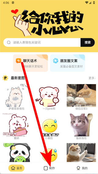 1、打開(kāi)表情包類,點(diǎn)擊底部制作按鈕。