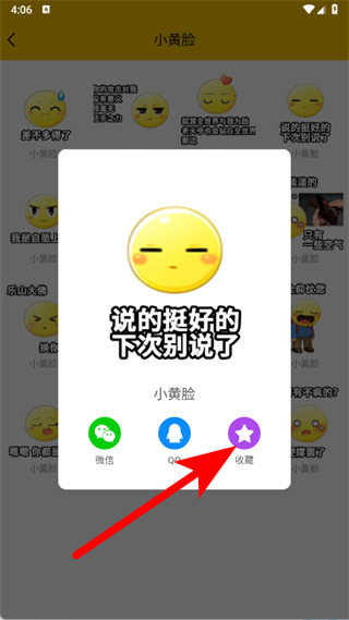 3、點(diǎn)擊選中的表情包,在彈出的分享選項(xiàng)中選擇收藏。