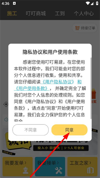 1、在隱私協(xié)議和用戶使用條款彈窗中,點擊同意,進入軟件。