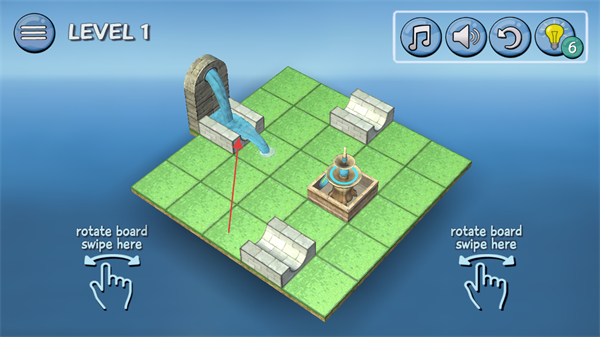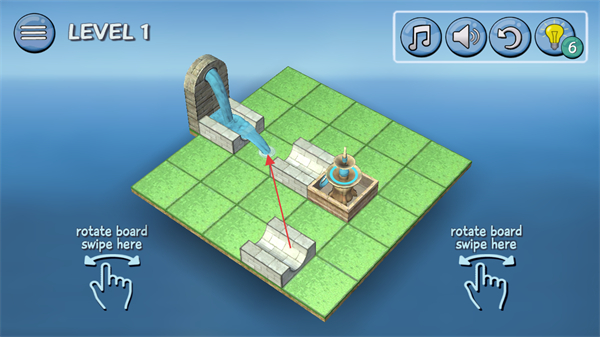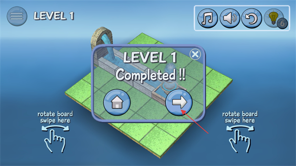 4、成功將水流引導(dǎo)至噴泉,出現(xiàn)LEVEL1Completed!提示后,點擊箭頭圖標進入下一關(guān)。