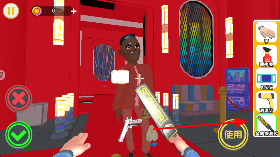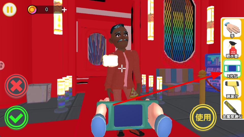 1、掃描操作,選擇右側X光儀工具,點擊使用,可對人物進行掃描,查看其是否攜帶東西。