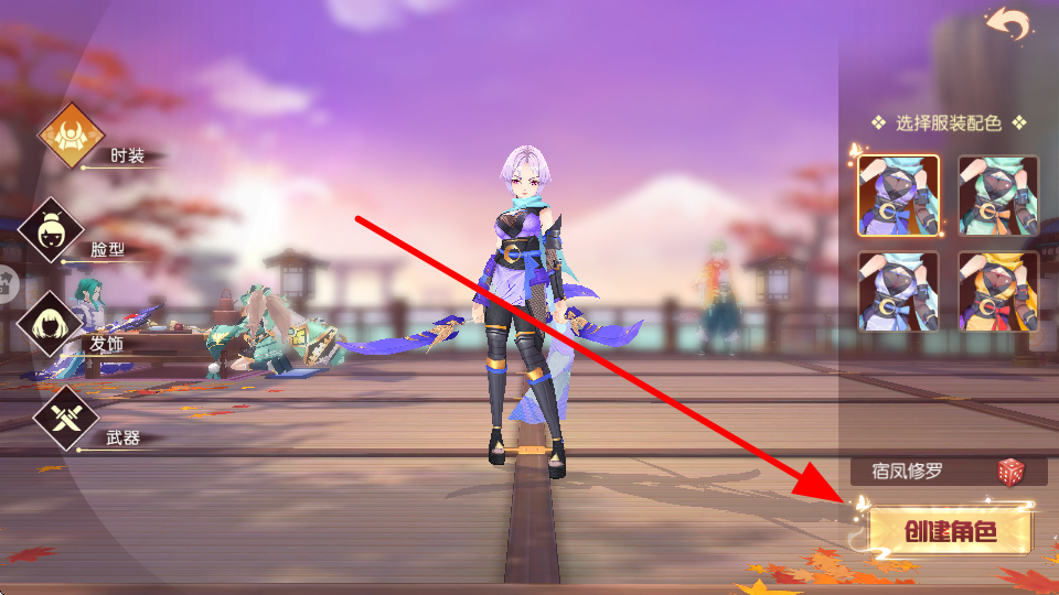 1、職業(yè)角色創(chuàng)建時,選擇時裝、臉型、發(fā)飾、武器等,打造心儀的角色形象,設置好后點擊創(chuàng)建。