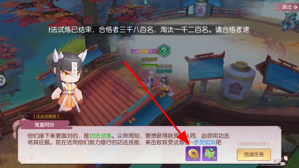 2、跟隨任務指引,與NPC對話接取任務,完成如功法試煉等任務要求,推進劇情,獲取經(jīng)驗等物品。