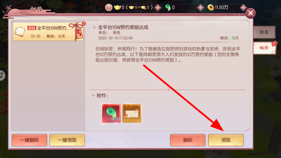 4、郵件福利領取,系統(tǒng)發(fā)送的郵件,如全平臺預約獎勵郵件,點擊領取,獲取郵件中福利的東西。