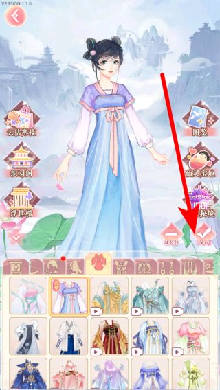 2、進(jìn)入游戲后,點(diǎn)擊換裝按鈕,可進(jìn)入換裝界面,選擇不同的服飾,如衣裙、頭飾等,為角色搭配出心儀的造型。